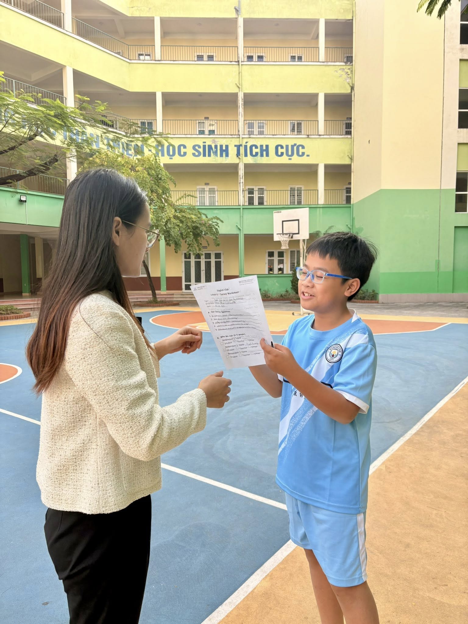 Trong tiết học dự án tuần này, các học sinh khối 3, 4, 5 của Câu lạc bộ Tiếng Anh đã thực hiện một nhiệm vụ đặc biệt: phỏng vấn các bác lao công, bảo vệ, thầy cô và nhân viên văn phòng của Trường Tiểu học Chu Văn An xoay quanh hai chủ đề quan trọng: