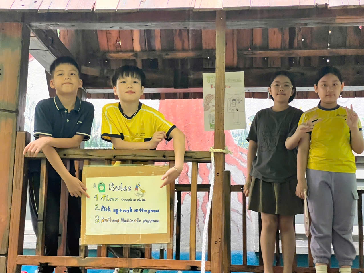 - Những chiếc thùng rác với thông điệp nhắc nhở được đặt tại sân chơi.