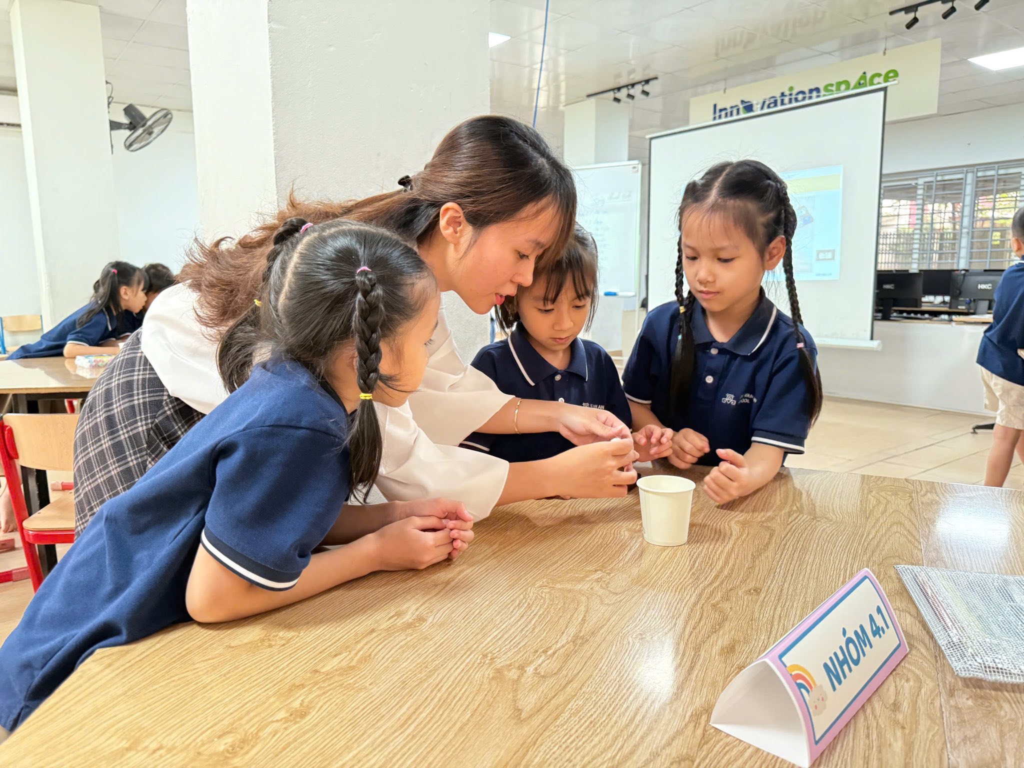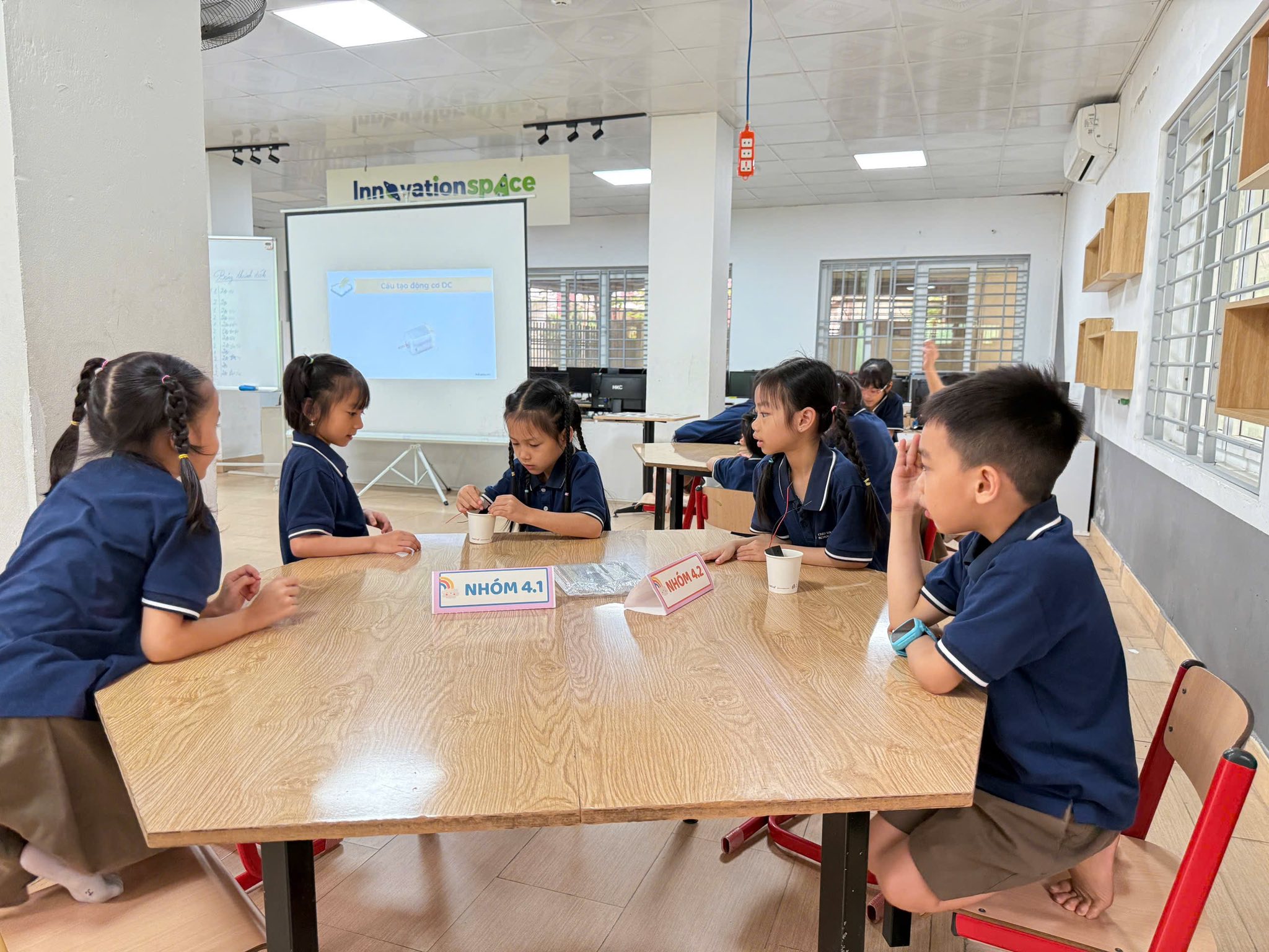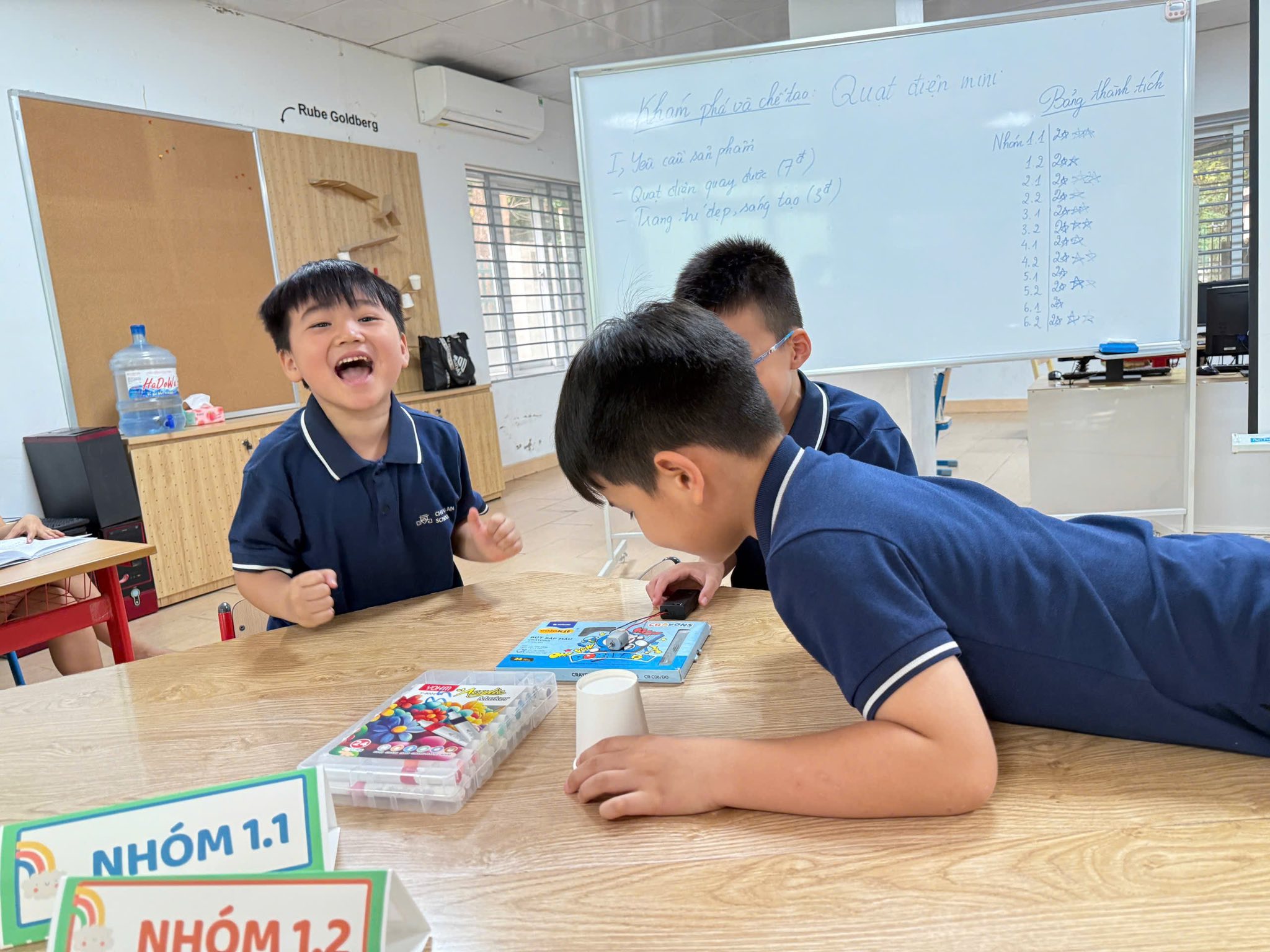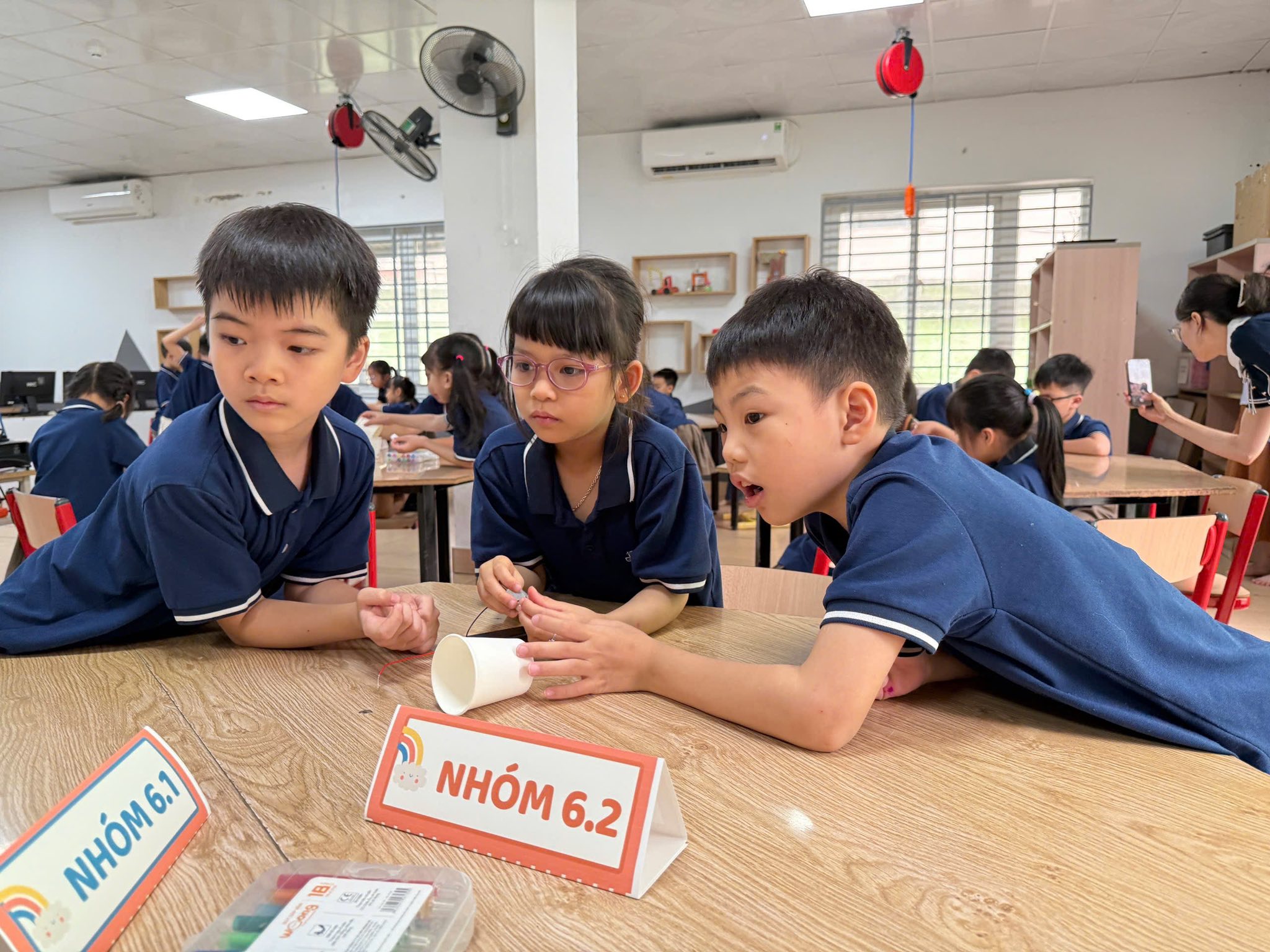 Với các con học sinh lớp Một, khái niệm về "dòng điện" hay "động cơ" vốn dĩ trừu tượng. Nhưng khi được tận tay chạm vào viên pin, kết nối những sợi dây màu sắc và nhìn thấy cánh quạt khẽ rung rinh rồi chuyển động, lý thuyết đã trở thành trải nghiệm sống động.