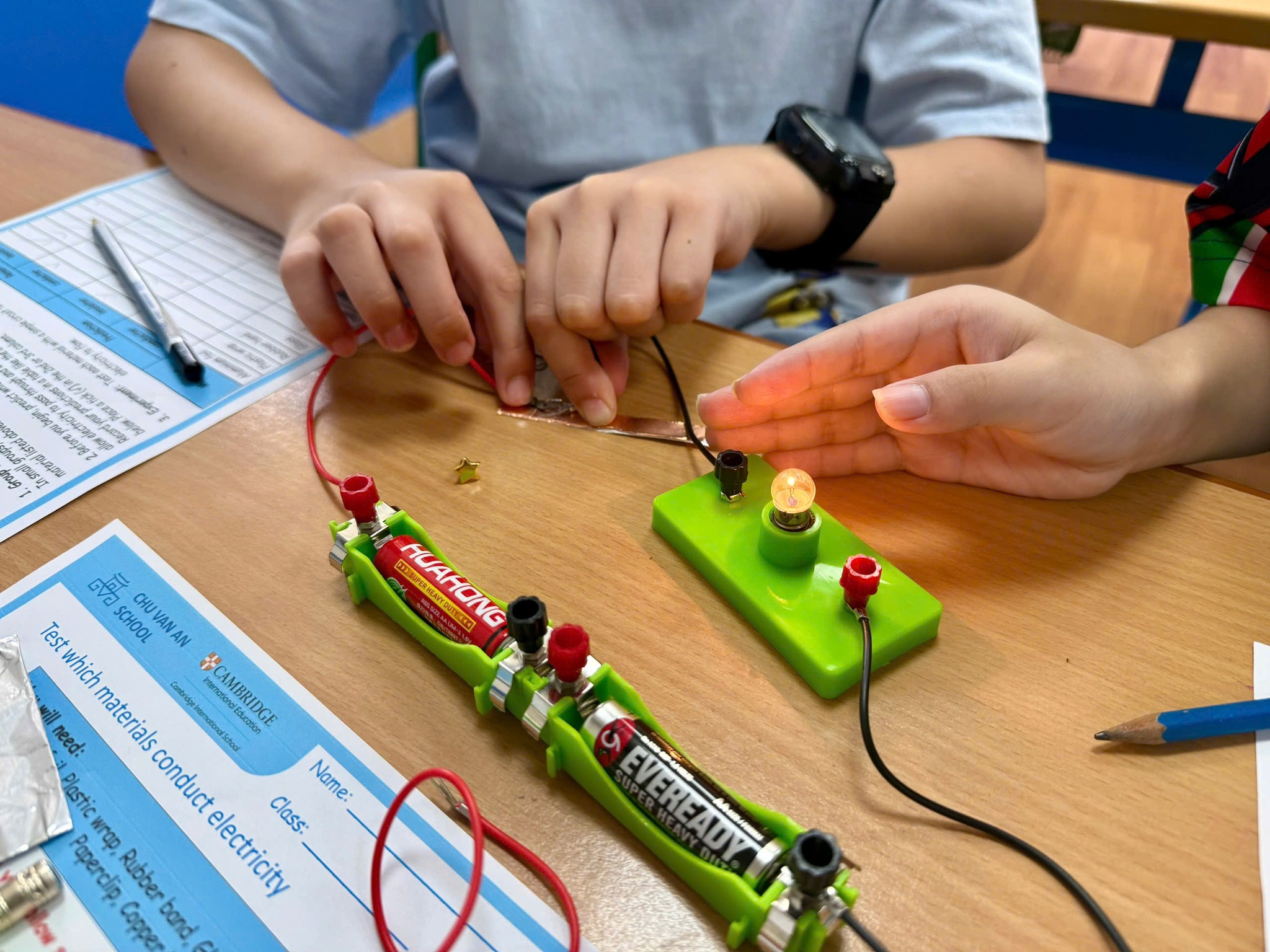 Trong tiết học Khoa học, học sinh Trường Tiểu học Chu Văn An lần đầu tiên được tự tay lắp mạch điện.