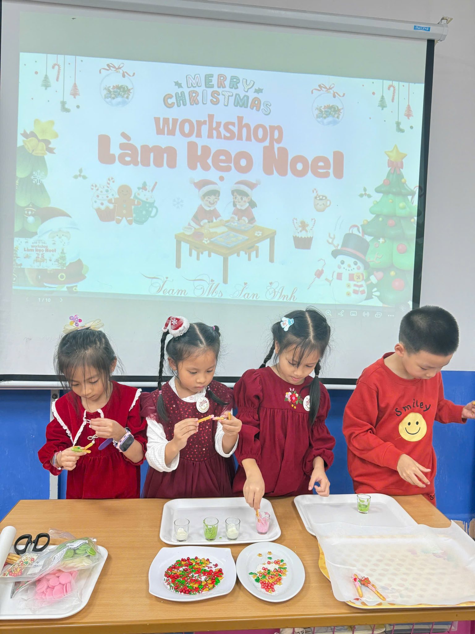 Trong không khí rộn ràng của mùa Giáng sinh, hôm nay các bạn nhỏ lớp 1A1 đã có một trải nghiệm thật đáng nhớ tại Workshop “Làm kẹo Noel” – nơi lần đầu tiên, những đôi tay bé xíu tự mình tạo nên những món quà ngọt ngào để dành tặng người thân yêu.