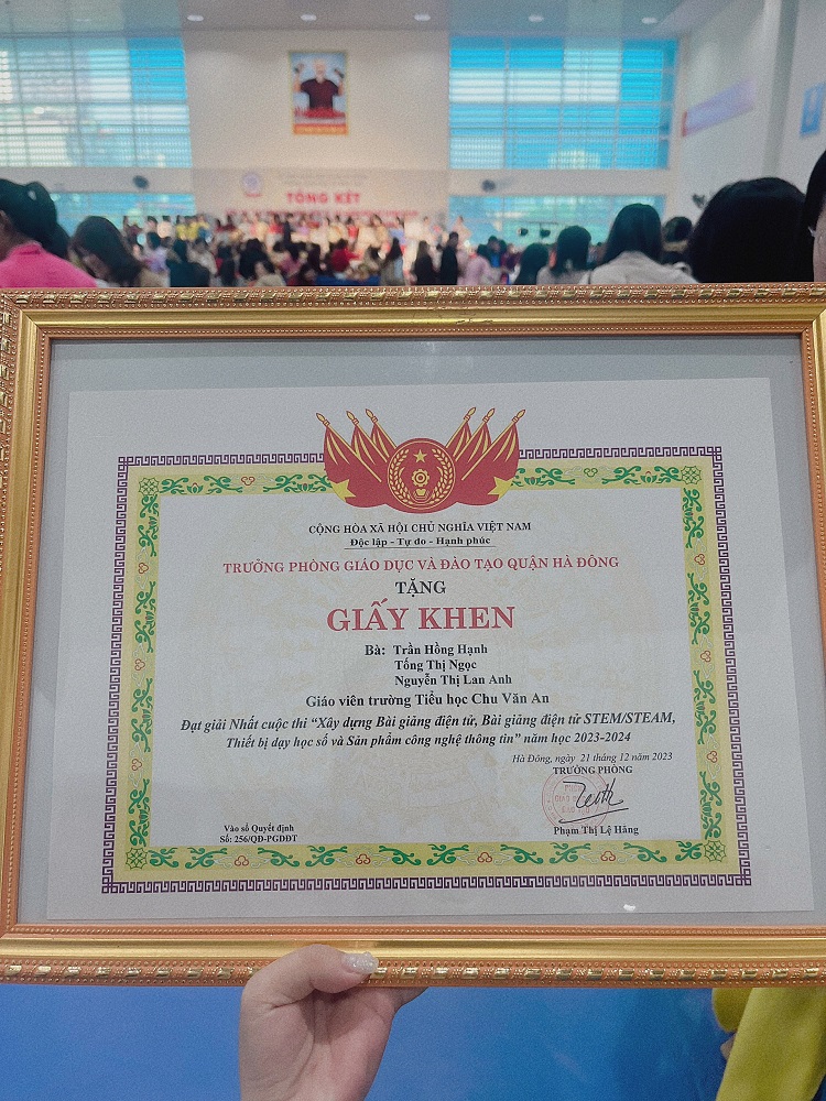 Đã ghi dấu ấn bằng sự sáng tạo và nỗ lực không ngừng nghỉ trong công tác giảng dạy để đạt được giải Nhất Cuộc thi “Xây dựng Bài giảng điện tử, Bài giảng điện tử STEM/STEAM, Thiết bị dạy học số và Sản phẩm CNTT” ngành Giáo dục và Đào tạo quận Hà Đông năm học 2023-2024".