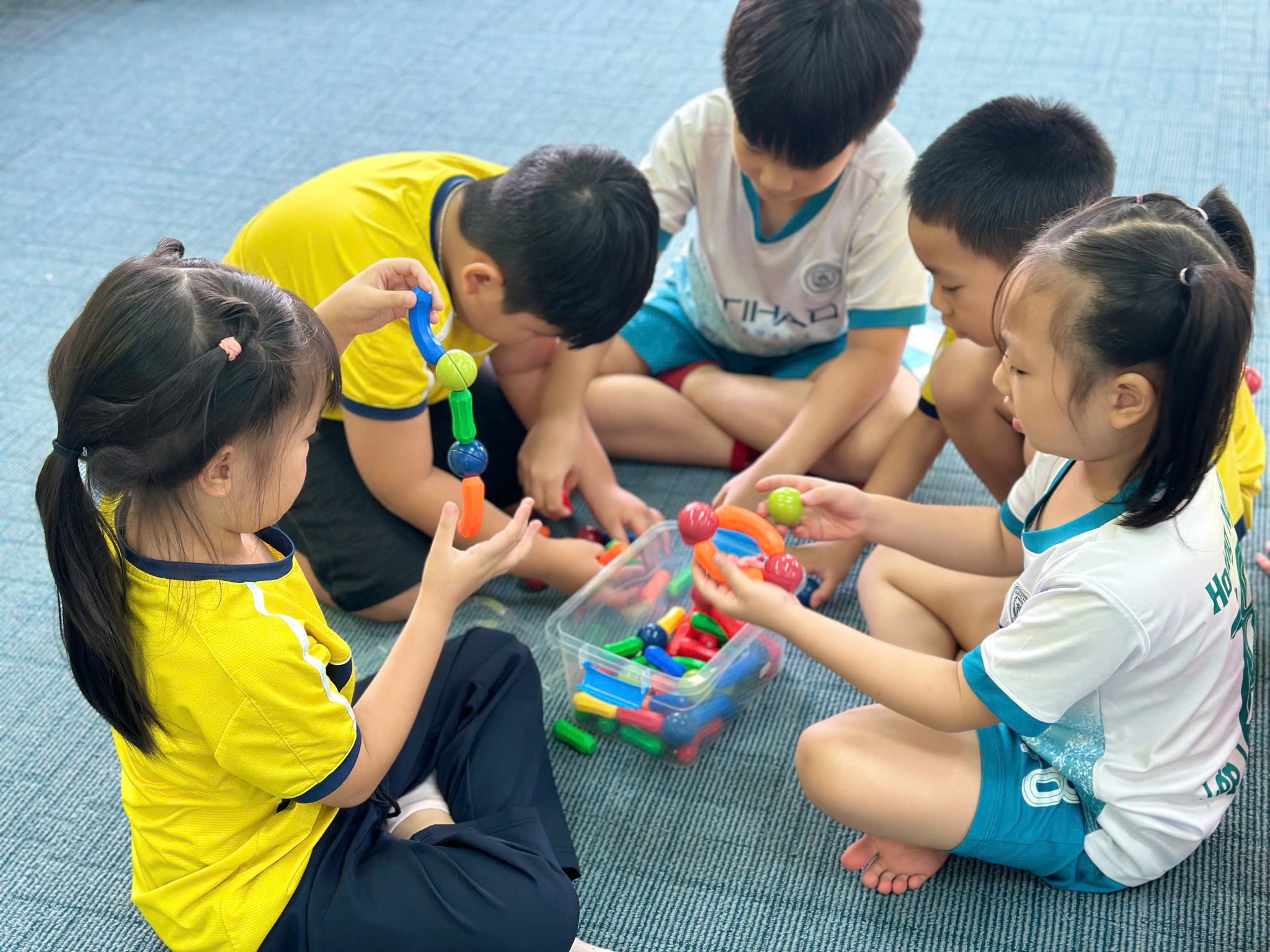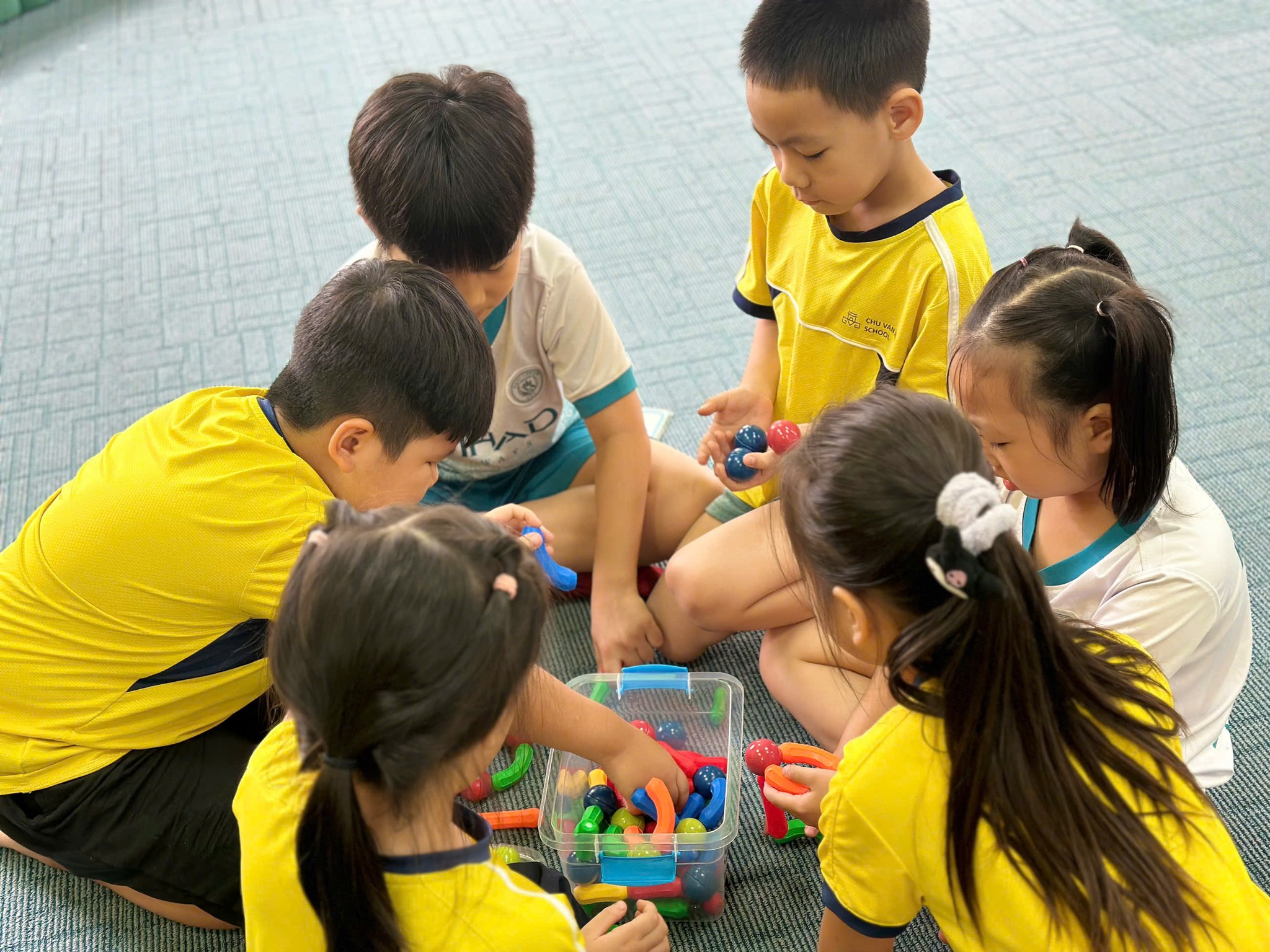 Học sinh được tương tác, hướng dẫn bởi giáo viên nước ngoài. Các con sẽ sử dụng magnetic bar blocks để tạo hình khối 3D: cube, cylinder, pyramid, cuboid,... xây dựng toà tháp cao nhất, kiên cố nhất. Với phương pháp dạy học ứng dụng thực tiễn và sử dụng các giáo cụ trực quan, các con sẽ tiếp thu bài học hiệu quả hơn.