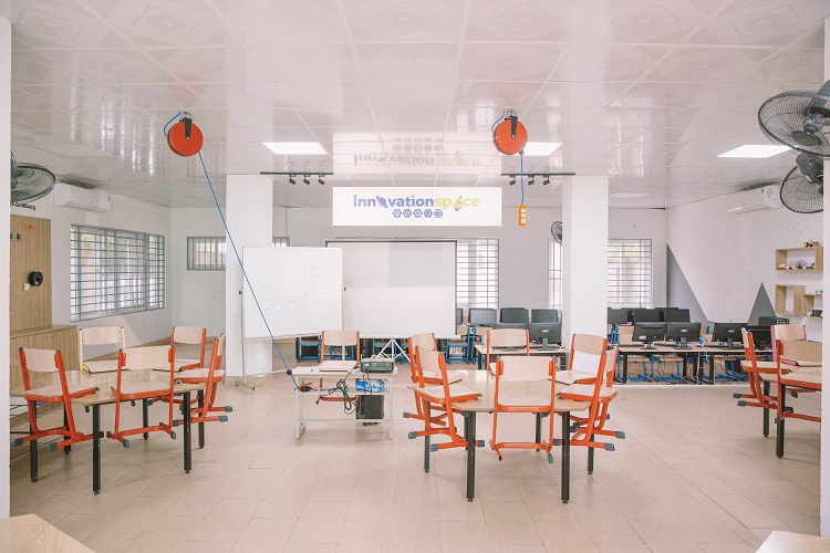 Lớp học được bố trí linh hoạt để hỗ trợ nhiều hình thức học tập: làm việc nhóm, thảo luận, học cá nhân hoặc phát triển các dự án sáng tạo.