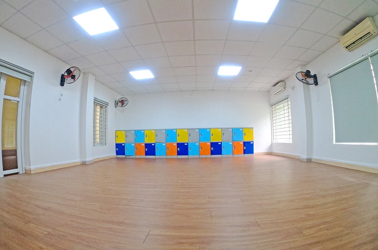 Không gian được trang bị đầy đủ bàn ghế phù hợp với thể chất học sinh, tủ cá nhân, điều hòa nhiệt độ, máy chiếu, thiết bị hỗ trợ giảng dạy hiện đại, phục vụ tối ưu cho các hoạt động học tập đa dạng.