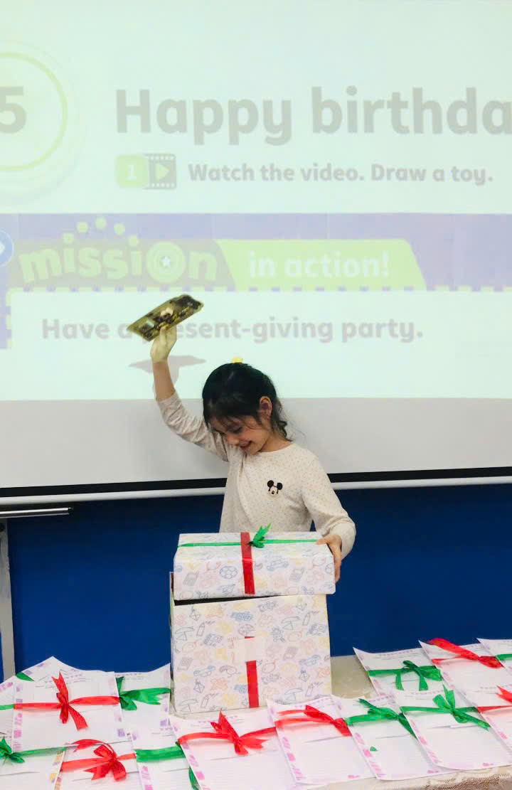 Một tiết học tiếng Anh đầy bất ngờ và thú vị đã diễn ra tại lớp 1S2 với hoạt động "Mystery Gift Box". Các bạn nhỏ nhận được một món quà bí ẩn, nhưng thay vì mở ngay, các con phải sử dụng khả năng quan sát, cảm nhận và diễn đạt bằng tiếng Anh để miêu tả món quà mà không được tiết lộ tên gọi.