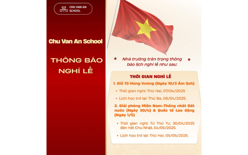 THÔNG BÁO NGHỈ LỄ GIỖ TỔ HÙNG VƯƠNG & LỄ 30/4 - 1/5