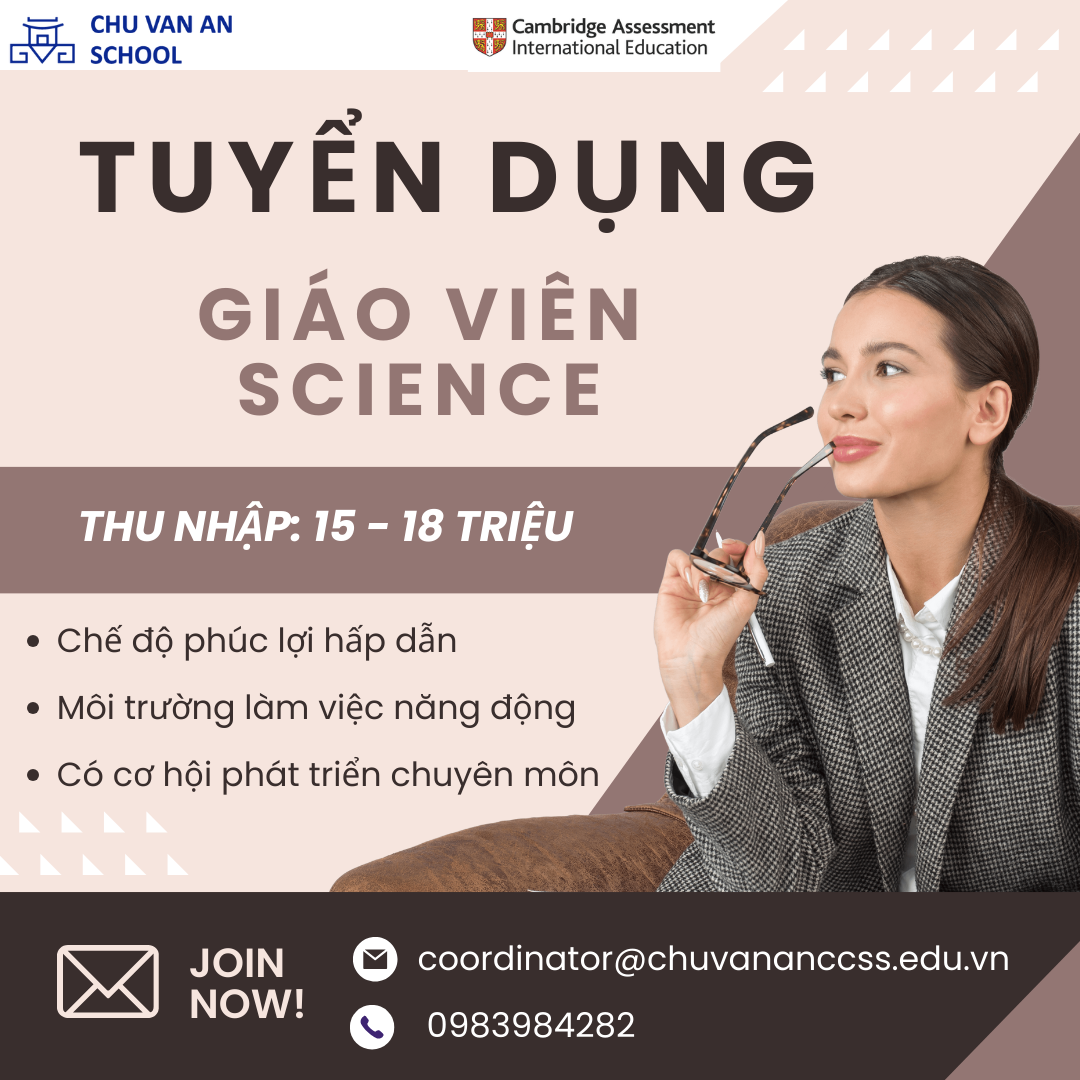Với tầm nhìn, chiến lược phát triển dài hạn là trở thành Nhà trường theo mô hình Cambridge , sau 10 năm hoạt động, mang lại những giá trị về đào tạo, đề cao sự tôn trọng cá nhân. Trường tiểu học Chu Văn An đã trở thành một trường học quốc tế uy tín trên địa bàn Hà Đông. Năm học 2024 – 2025 Nhà trường cần tuyển Giáo viên Khoa học dạy bằng tiếng Anh, cụ thể như sau: